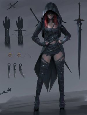 Typowy ekwipunek Aali podczas wykonywania samodzielnych zleceń.
