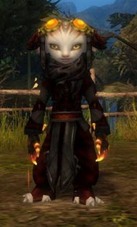 Jej rodzice byli znanymi naukowcami w Rata Sum jednak musieli uciekać ponieważ oskarżono ich o wiele przestępstw. Tak znaleźli się w grupie pod nazwą Inquest. Feng gdy była mała przypadkiem usłyszała rozmowy o Kintaju nie wiedziała co to jest lecz podsłuchując te rozmowy zafascynowała się Kintajem i od tamtego czasu czytała wszystko co wpadło w jej ręce na temat Kintaju. Przez cały czas była w Inquest była szkolona na szpiega aby zbierać informacje na temat Tyrii , ras i tego co dzieje się w miastach. Po 15 latach gdy Feng była jednym z pewniejszych kandydatów na stanowisko głównego dowódcy oddziałów szpiegowskich została wrobiona przez innych kandydatów w zdradę i pomoc ludziom. Wtedy musiała uciekać . Podróżowała przez 2 lata gdy spotkała asurę o imieniu Graagu który powiedział jej o bractwie Leth Mori Aiwe. OD tego momentu zaczęła podążać do miejsca ich siedziby. Aktualnie jest adeptem w bractwie i ukrywa się tam przed zemstą całego Inquestu. Po miesiącach ciągłych patroli wokół siedziby i pobliskich miejsc Feng postanowiła wyruszyć do najbliższej siedziby Inquestu żeby zrobić zamach na głównego dowódcę tej placówki. To był plan na większą metę i Feng chciała go kontynuować aż do skutku nie licząc się z kosztami jakie będą tego następstwem. Więc Feng pewnego wieczoru wyruszyła do ukrytej siedziby w Sparkfly Fen. Plan okazywał by się dobry Feng miała znaleźć i zabić pojedyncza jednostkę Inquest przebrać się i wejść do placówki po czym znaleźć pokój dowódców i ich zabić. Wszystko szło zgodnie z planem dopóki nie została poproszona w pomocy z eksperymentowaniem na centaurach. Gdy Feng znalazła się w tym pomieszczeniu nie mogła wytrzymać widoku torturowanych istot i wściekła zaczęła atakować asury które stały przy konsolach. Po kilku minutach walki Feng w końcu została sparaliżowana przez innych strażników i obudziła się w celi. Gdy się obudziła przed celą widziała starych przełożonych którzy rozpoznali ją lecz nie chcieli jej zabić. Pomimo tego że była ogłuszona mogła się domyślić ze jeżeli jeszcze żyje to będzie obiektem eksperymentów. Następny razem gdy się obudziła była w jakimś pomieszczeniu przywiązana i lewitująca. Podłączone do niej było kilkadziesiąt przewodów. Pierwsze wyładowanie odczuła jakby napływała w nią energia która w pewnym sensie rozpalała ją od środka. Seria dziesięciu wyładowań wykończyła Feng która czuła w sobie wzrost magii po czym zamiast pojedynczego wyładowania otrzymała długie wyładowanie po którym zemdlała. Gdy po raz kolejny się obudziła siedziała na krześle przywiązana do krzesła i miała do głowy podłączone kolejne przewody. Jak ostatnim razem dostała serię wyładowań i następne długie. Po czym pasy zostały od niej odczepione lecz nie mogła się sama ruszyć. Nagle wstała czuła się jakby było kontrolowana i tak właśnie było. Po chwili zaczęły się jej podpalać nogi i płomień szedł w górę. Po chwili całe jej ciało paliło się a jej skóra przybrała postać magmy. Feng spanikowana nie mogła nic zrobić jak by było kontrolowana. Lecz gdy wtedy przed oczami przeleciało jej wszystko co Inquest zrobił przeciwko niej i za wszelką cenę chciała jakimś cudem uwolnić się spod kontroli techników. Ledwo co ale dzięki sile woli wyrwała się spod kontroli Inquest lecz nie wiedziała jak kontrolować formę w którą zmienili ją wszyscy naukowcy. Po dłuższej chwili Feng przebiła się przez ścianę i wyleciała z całej siedziby. Jakiś czas później obudziła się i nie miała pojęcia gdzie się znajduję i ile czasu minęło. Po pewnym czasie okazało się że nie potrafi kontrolować nowo nabytej "zdolności" jeżeli tak to można było nazwać i od czasu do czasu po prostu zamieniała się w "płomyczka" tak nazwała swój nowy problem. Lecz postanowiła że spróbuje się nauczyć to kontrolować i wykorzystać to przeciwko Inquest.