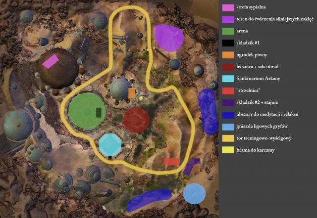 - Tor do treningu jazdy na wierzchowcach - rozciągający się przez cały Azyl, wyznaczony przez pochodnie i flagi umożliwia trening zarówno w dzień, jak i w nocy. Trudny teren, liczne zakręty, a nawet odcinek przeciągnięty przez płytką wodę mogą stanowić wyzwanie nawet dla wprawionych jeźdźców.